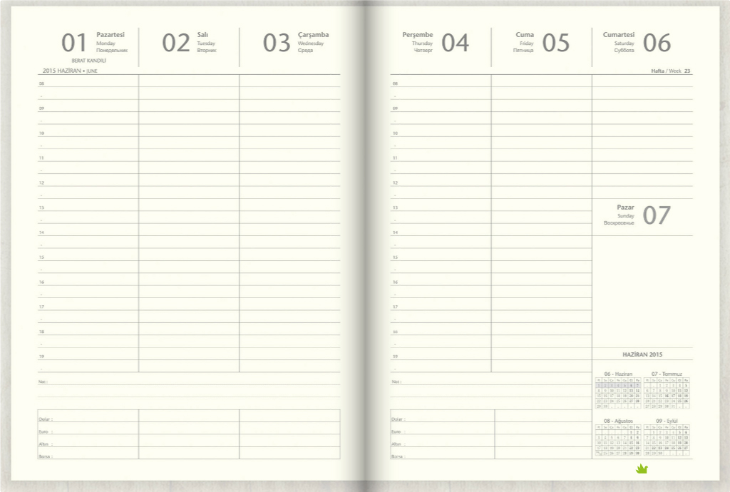 Haftalık Tarihli Yedek Organizer İç Refil Defter