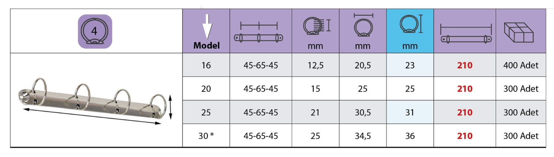 M-30 YUVARLAK 4 Halkalı 210 mm Klasör Mekanizması